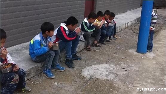 以前,孩子们无论严冬立夏,都只能蹲在操场的角落里用餐